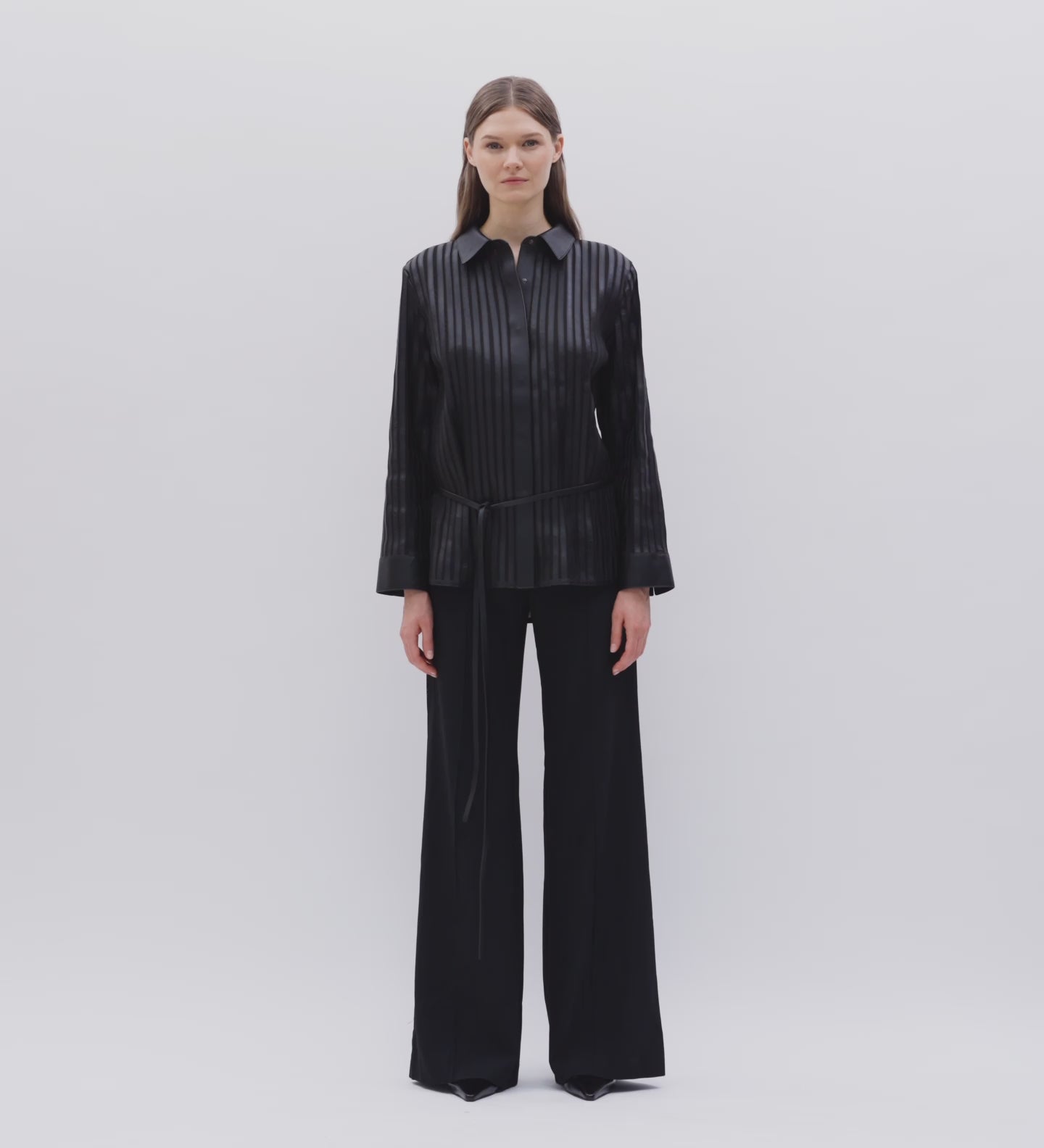 EVIOL TROUSERSHigh-waisted trousers with a center front pleat. Slightly flared silhouette. Structured waistband and invisible side zipper closure. Pocketless design.