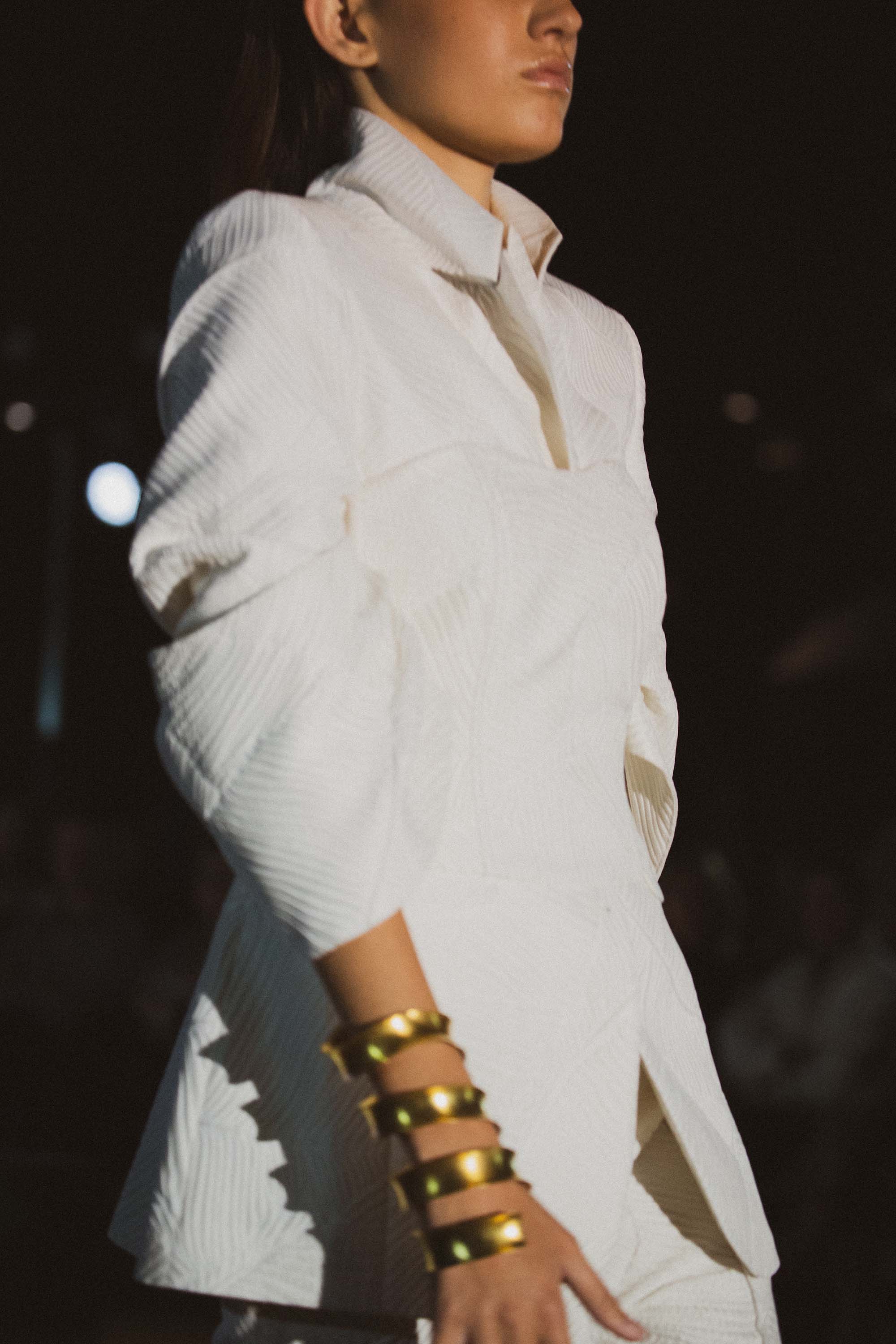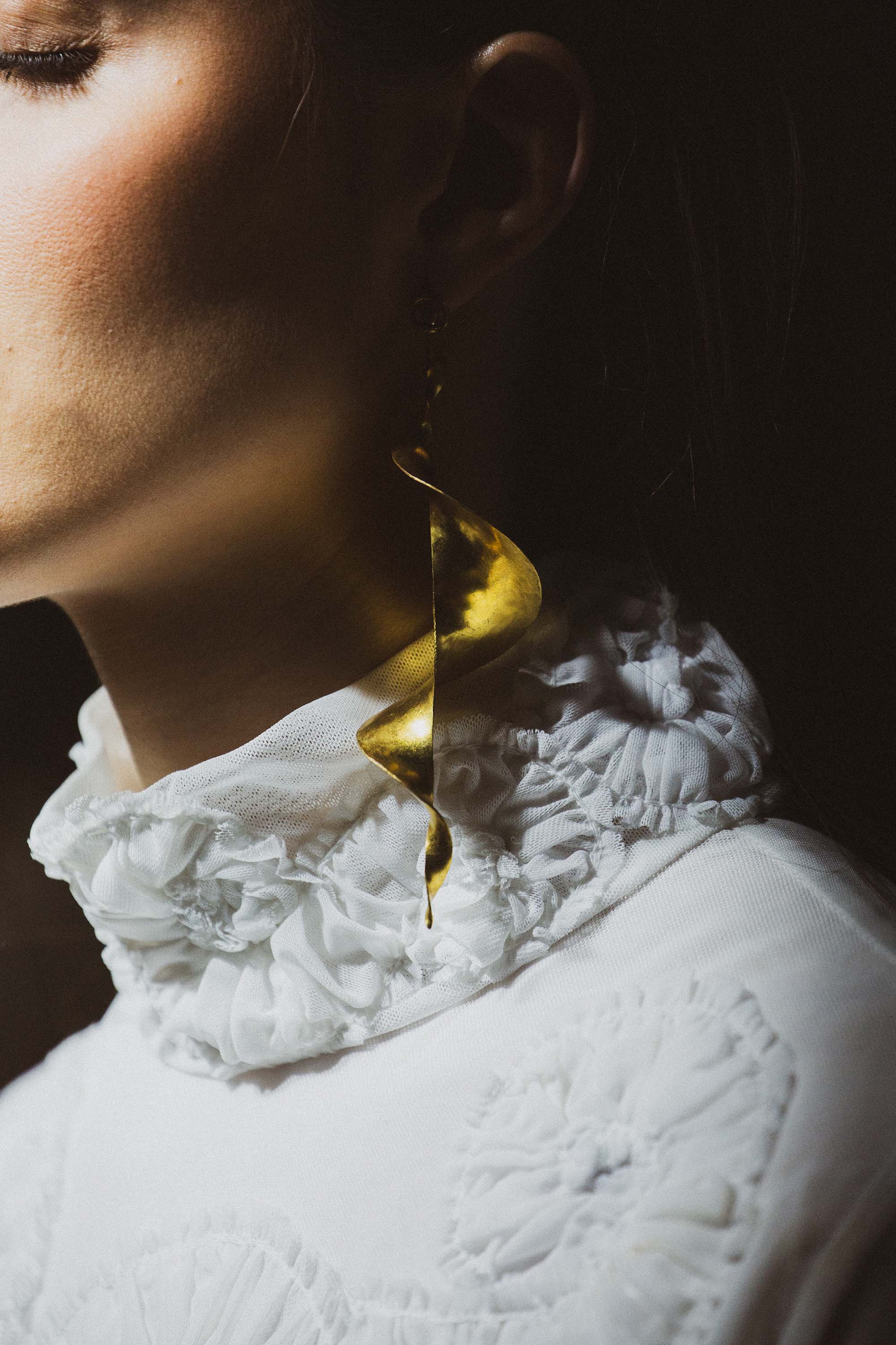 Las joyas escultóricas hechas artesanalmente en Barcelona por Olivia Barthe complementan cada uno de los looks de la pasarela.
