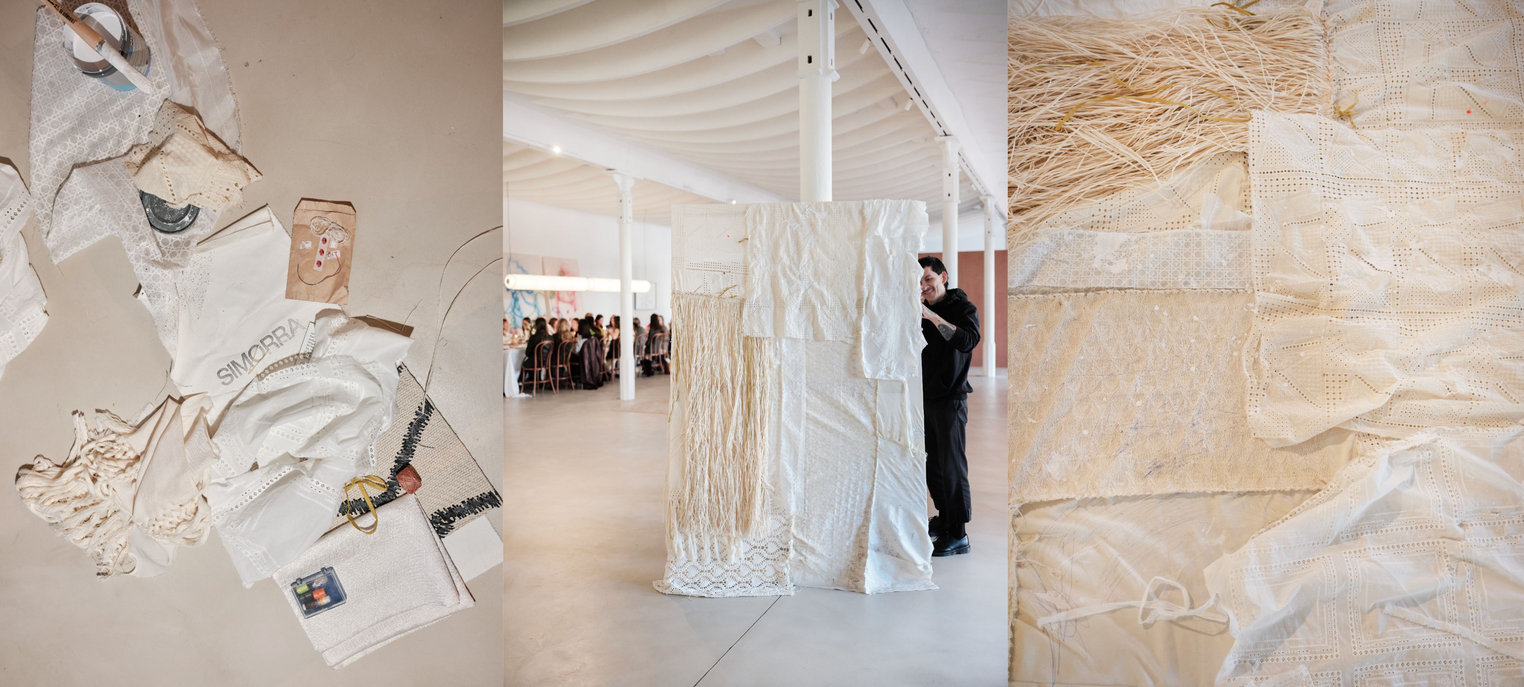 Art, matière, origine, création, tissu ; Ils sont les protagonistes du travail d'Armando Mesías x SIMORRA. Une œuvre qui, en plus de capturer l'essence de SIMORRA, donne vie à la performance qui a eu lieu lors du dernier événement des femmes créatives et entrepreneuriales de Barcelone.