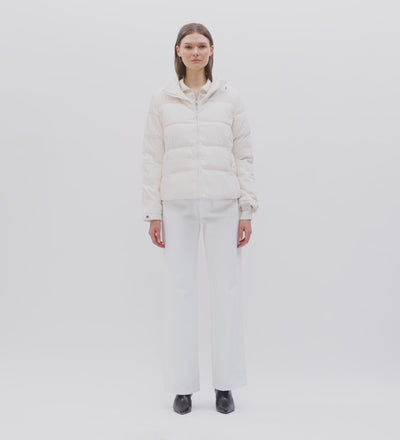 Doudoune courte matelassée, garnie de duvet. Col montant avec pattes de réglage. Tissu à motifs. Fermeture zippée dissimulée. Manches longues avec poignets à boutons-pression. Poches latérales zippées.