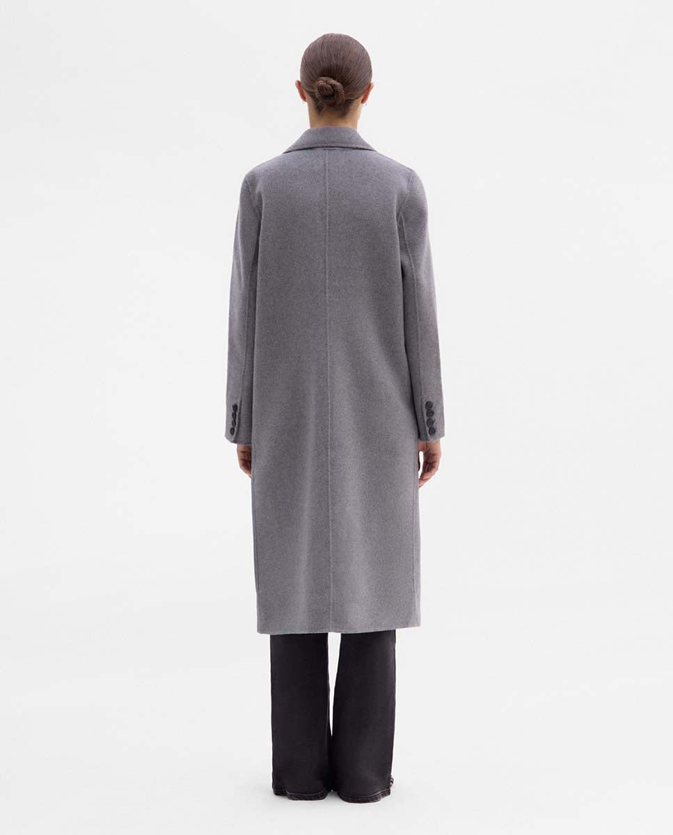Abrigo largo con lana doble faz. Cierre mediante doble botonadura frontal. Cuello con solapa de muesca. Bolsillos con solapa.